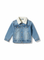 The soft cream shearling interior contrasts beautifully with the classic blue denim exterior, giving it a timeless appeal. Designed with practical details like metal button closure, dual chest pockets, and side hand pockets, this jacket is both functional and stylish — ideal for school, outings, or family get-togethers.